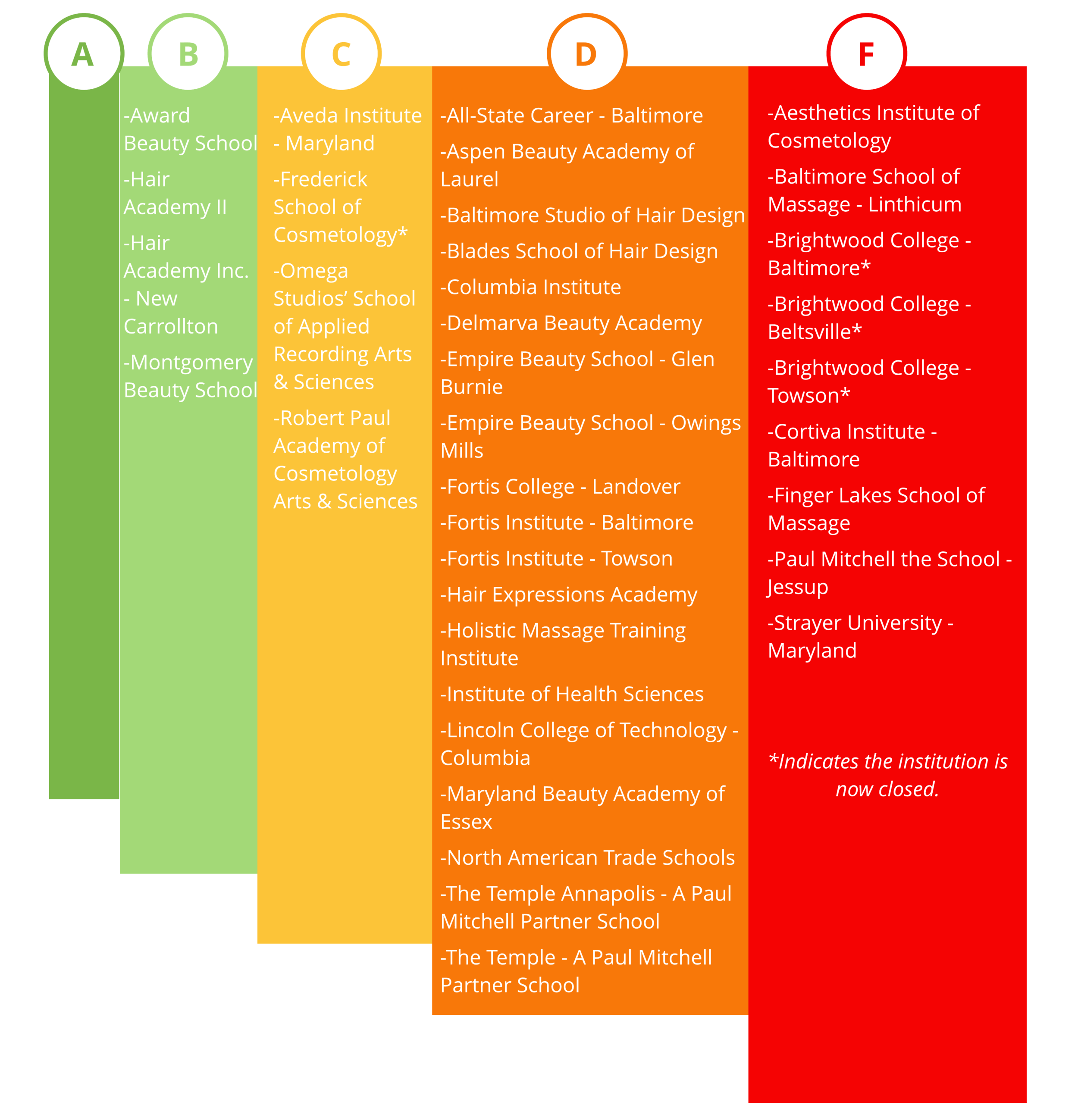 • Instructional Spending. Which for-profit schools in Maryland invest the most in education?